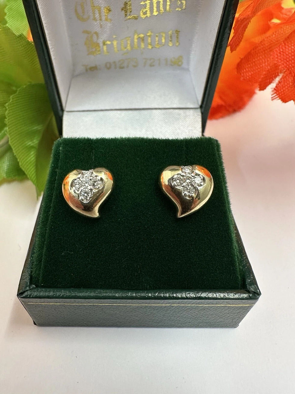 Pretty Diamond Heart Gold Cluster Earrings 9ct 0.50ct