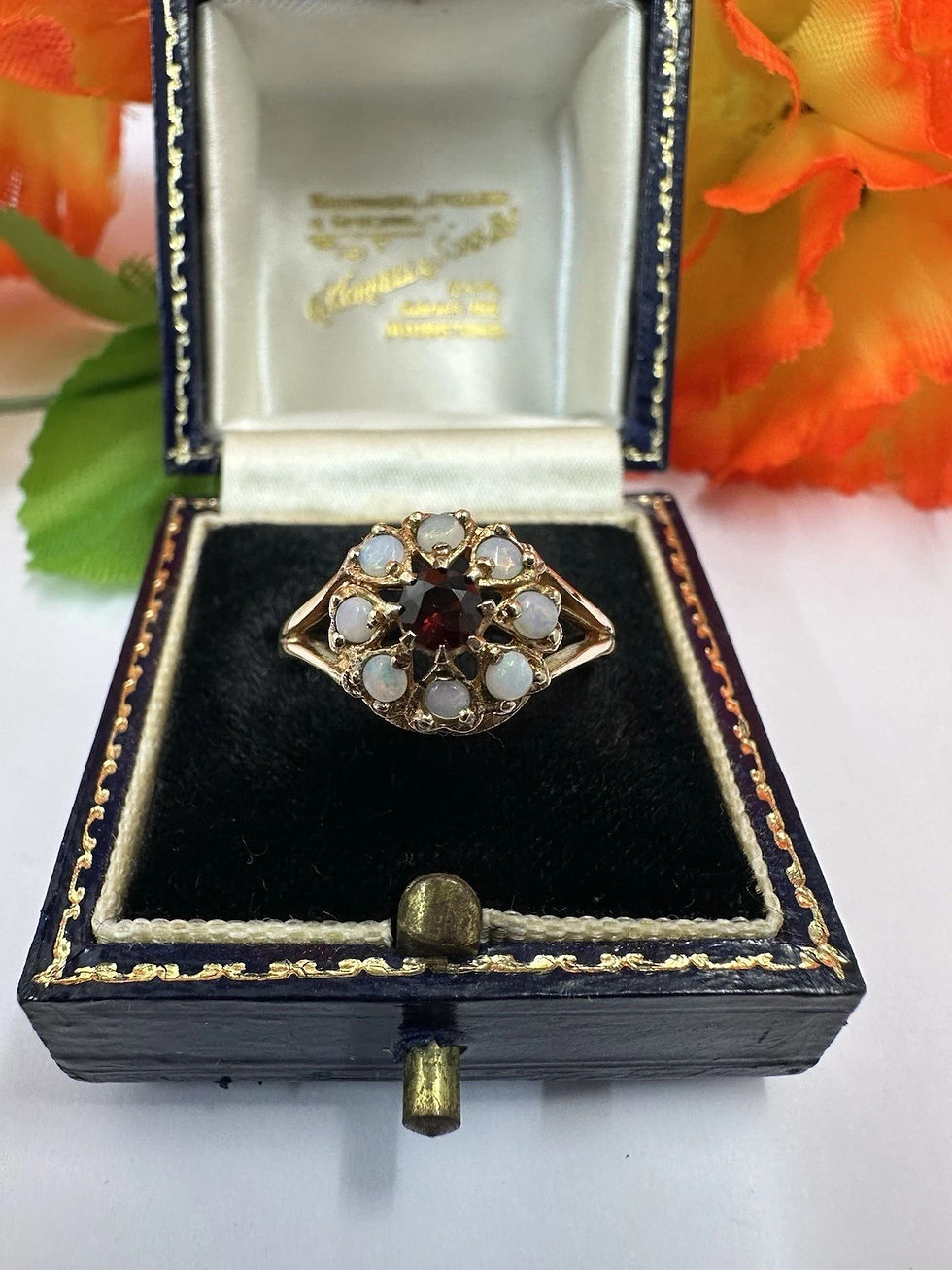 Opal And Garnet 9ct Cluster Ring. Yellow Gold